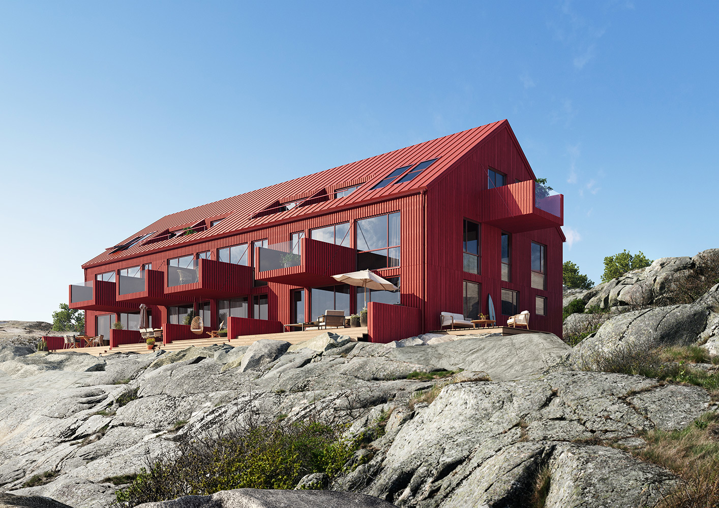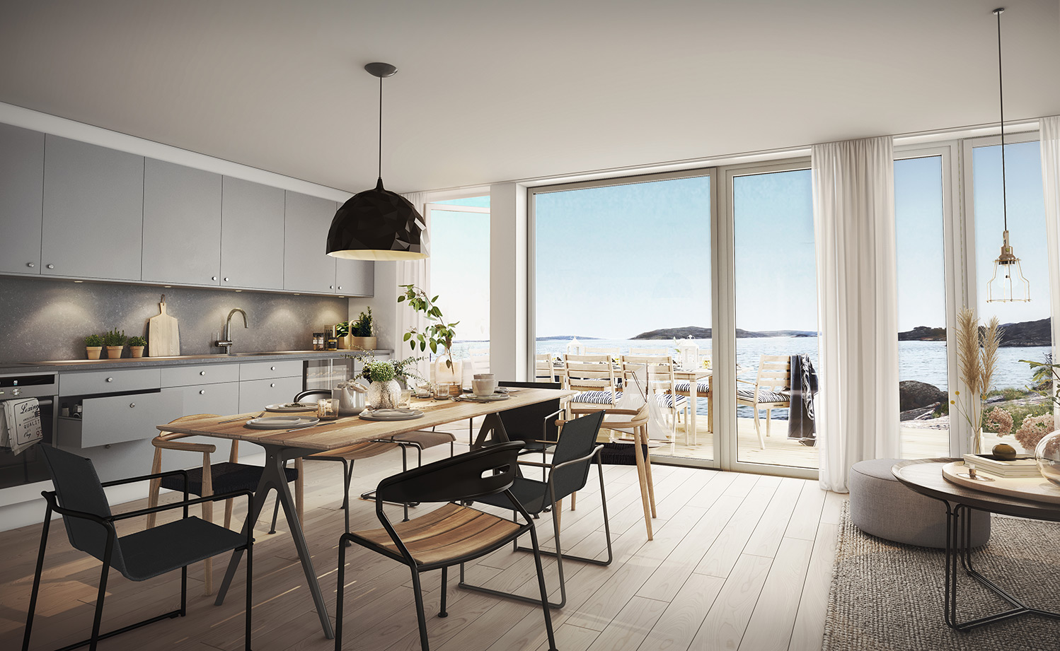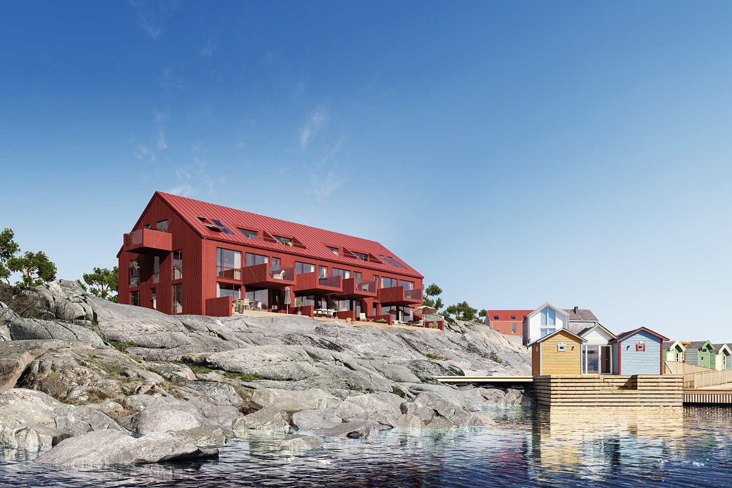 Byggnationen av lägenhetshuset, ritat av Wingårdh Arkitekter pågår för fullt. Det blir elva lägenheter med tillhörande förråd, en sjöbod om åtta kvm och en egen båtplats, alla lägenheter har en hänförande utsikt över havet. Försäljningen startar sommaren 2020 när lägenheterna är klara för inflyttning. Anmäl ditt intresse nu.